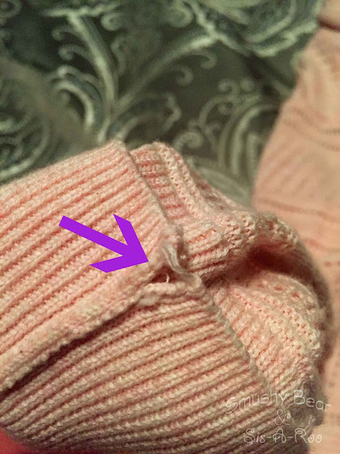 What some luck! Back in August I bought the kids some back to school clothes from GapKids this year. At the end of September they were finally able to start wearing some and as I put on this beautiful sweater on Sterling (on sale now and not an affiliate link :)!) and rolled the sleeves, I saw this...a separation! UGH! I still let her wear it, but I was not happy. Gap always has such good quality clothing.